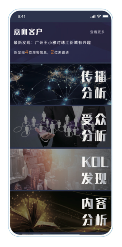 “智能获客3D沙盘”系统,以丰富、形象的内容为依托,打通营销闭环,针对不同属性的人群开展对应的营销策略,在一定程度上与受众之间建立深度互信、粘性互动,线上线下同时发力,轻松锁定高精客户精准转换营销方向,获得了客户的高度认可。
